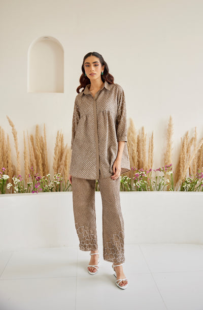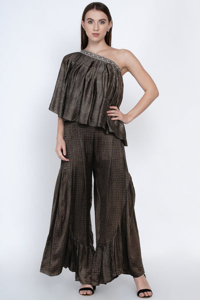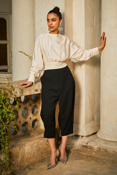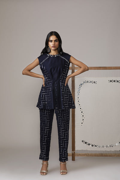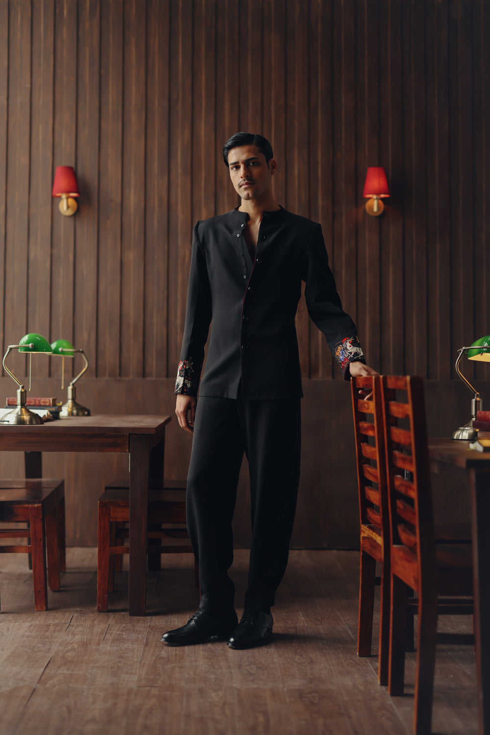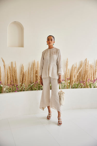 Art Deco Hi Neck Short Jacket with Dhoti Pants