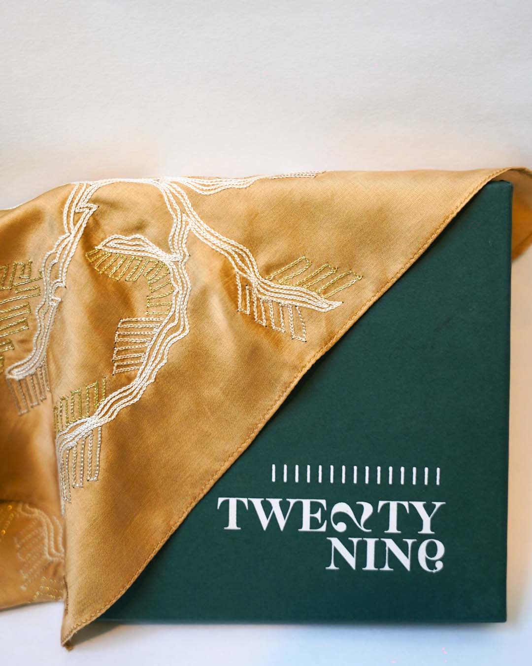 Aishwarya in our Off Shoulder Embellished Cape in Golden Zari Net with Pants