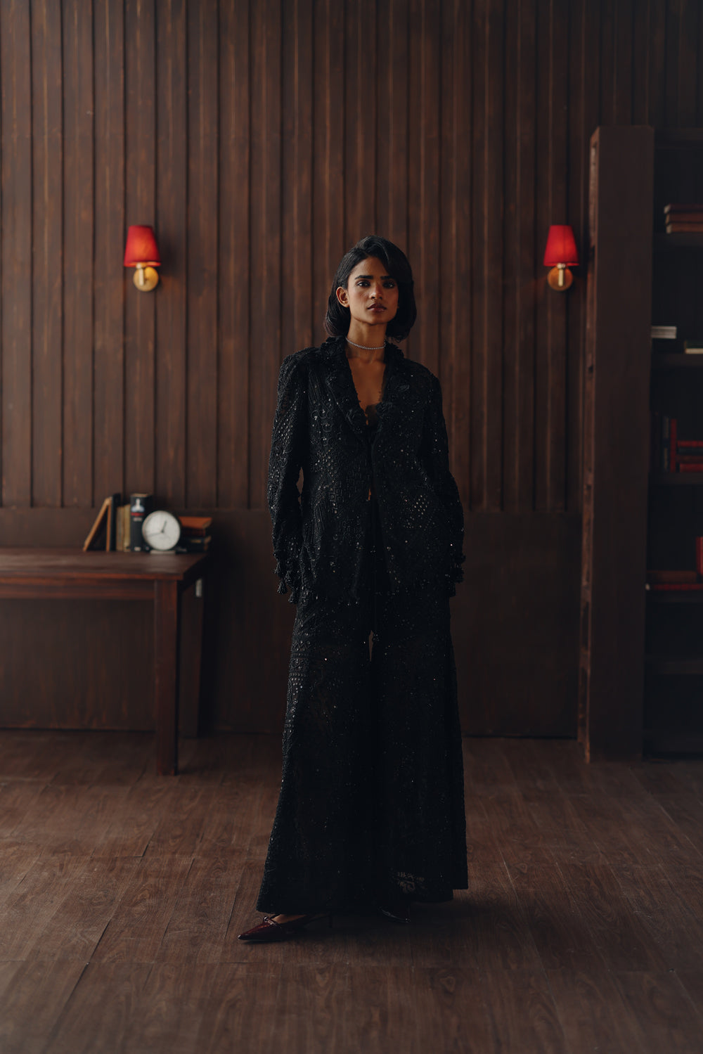 Anushka in our Lace Mirrorwork Jacket, Bandeau and Pants