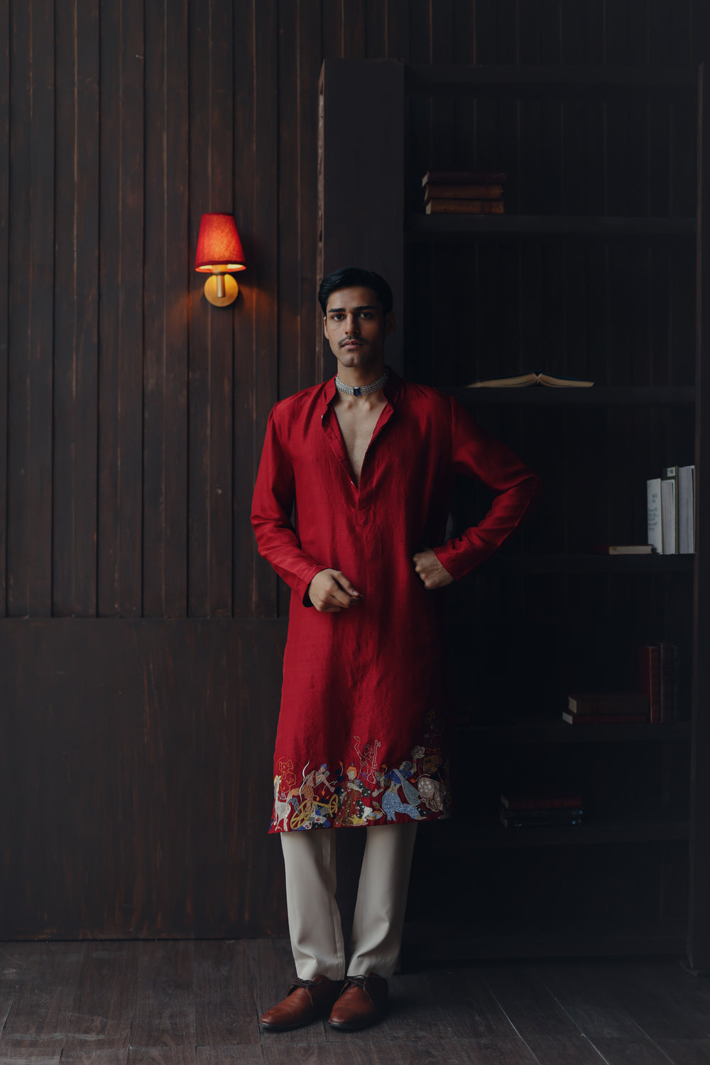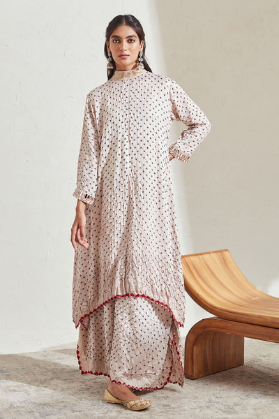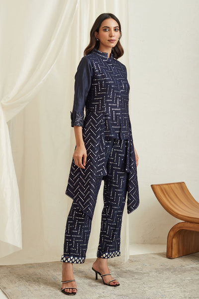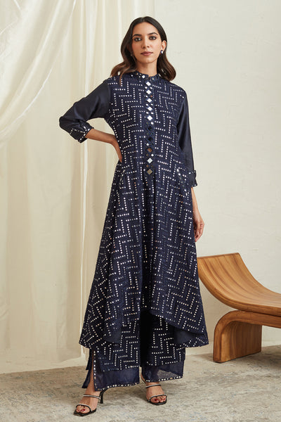 Ajrakh Kantha Work Kurta With Mirrorwork