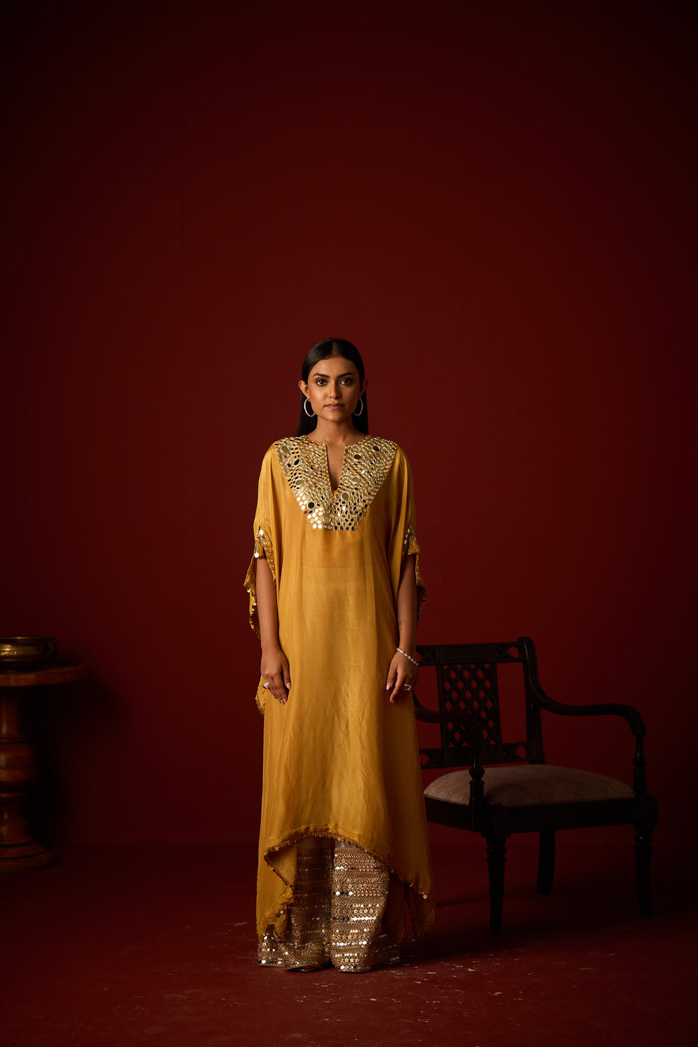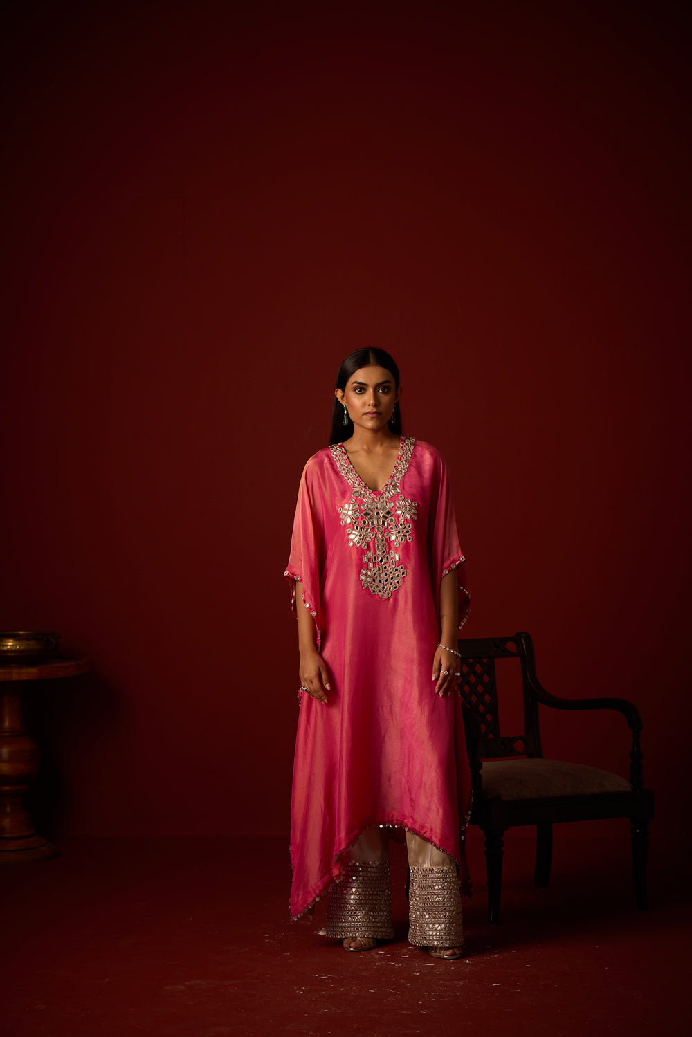 Bandhani Asymmetric Cherry Blossom Cuff Tunic