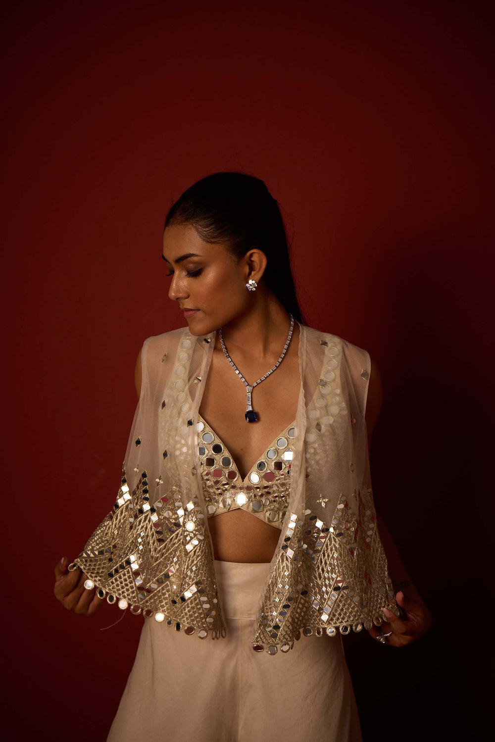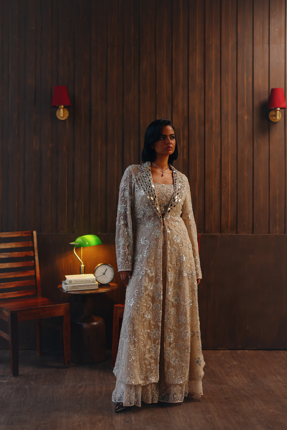 Arushi Mehra in our Lace Floral Long Blazer Set