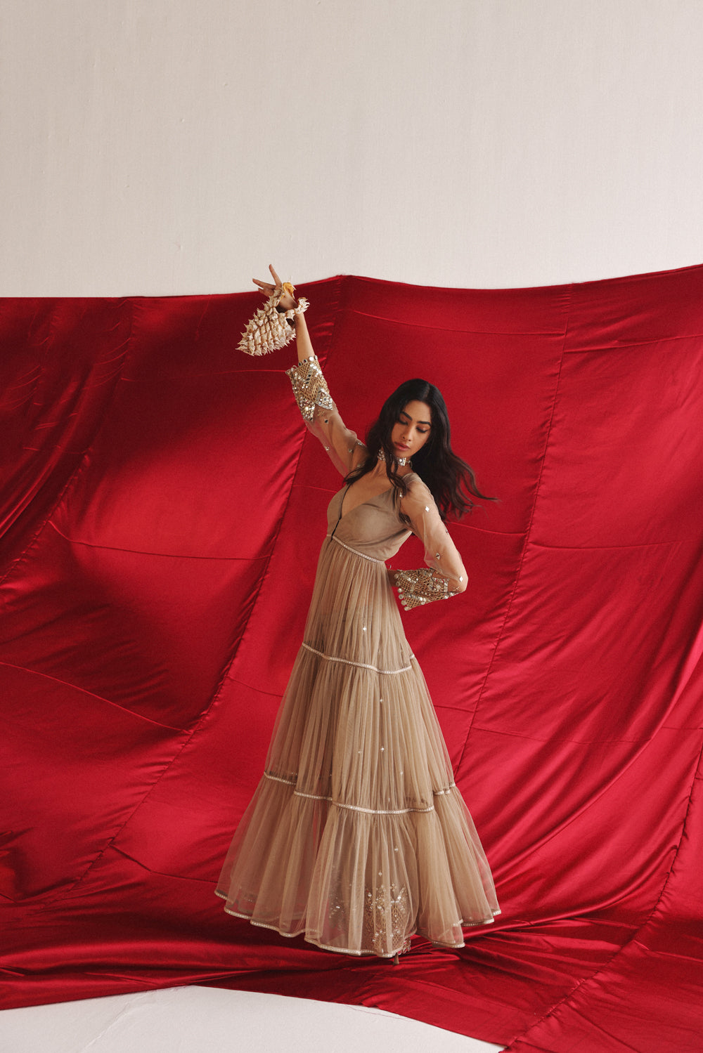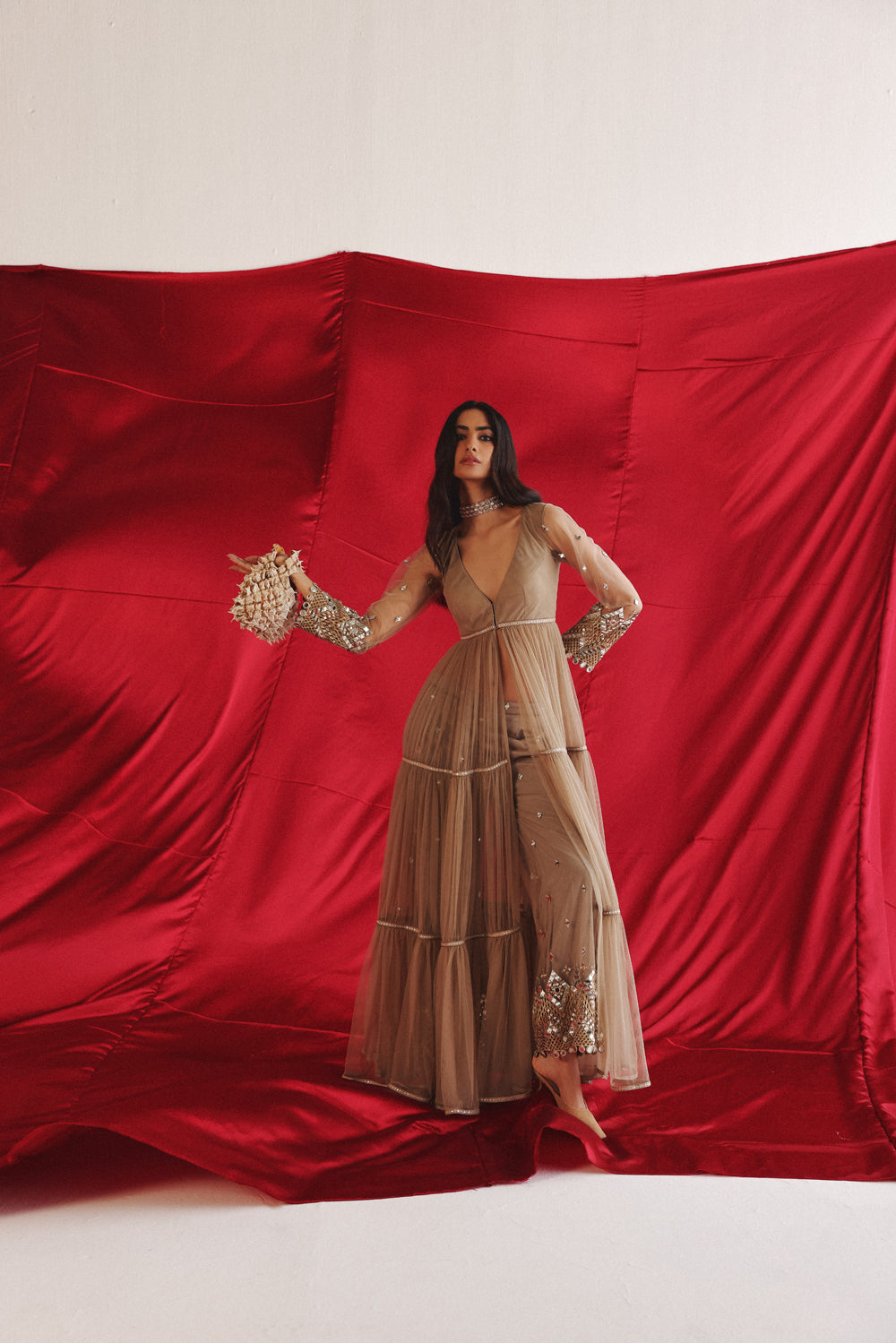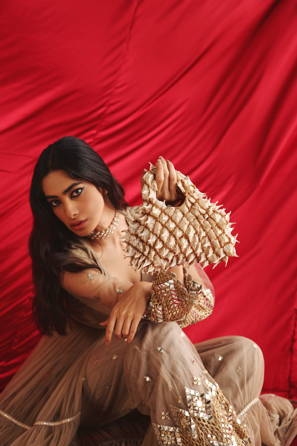 Fabric: Details : The Bag is made in hand tied and dyed Crushed Raidana Silk Bandhani, designed by us & crafted by master artisans in Kutch.