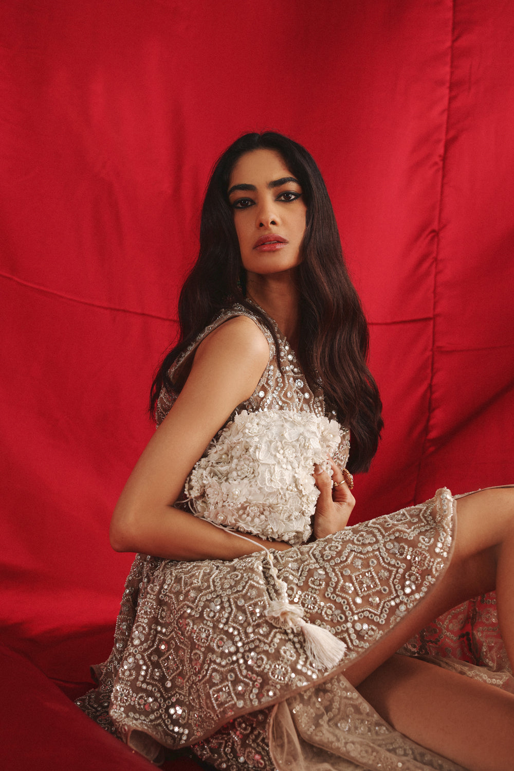 Fabric: Details : The Bag is made with intricate 3D flowers embroidered, embellished and hand-tied by our artisans. It is specially designed by us with great precision and detail.