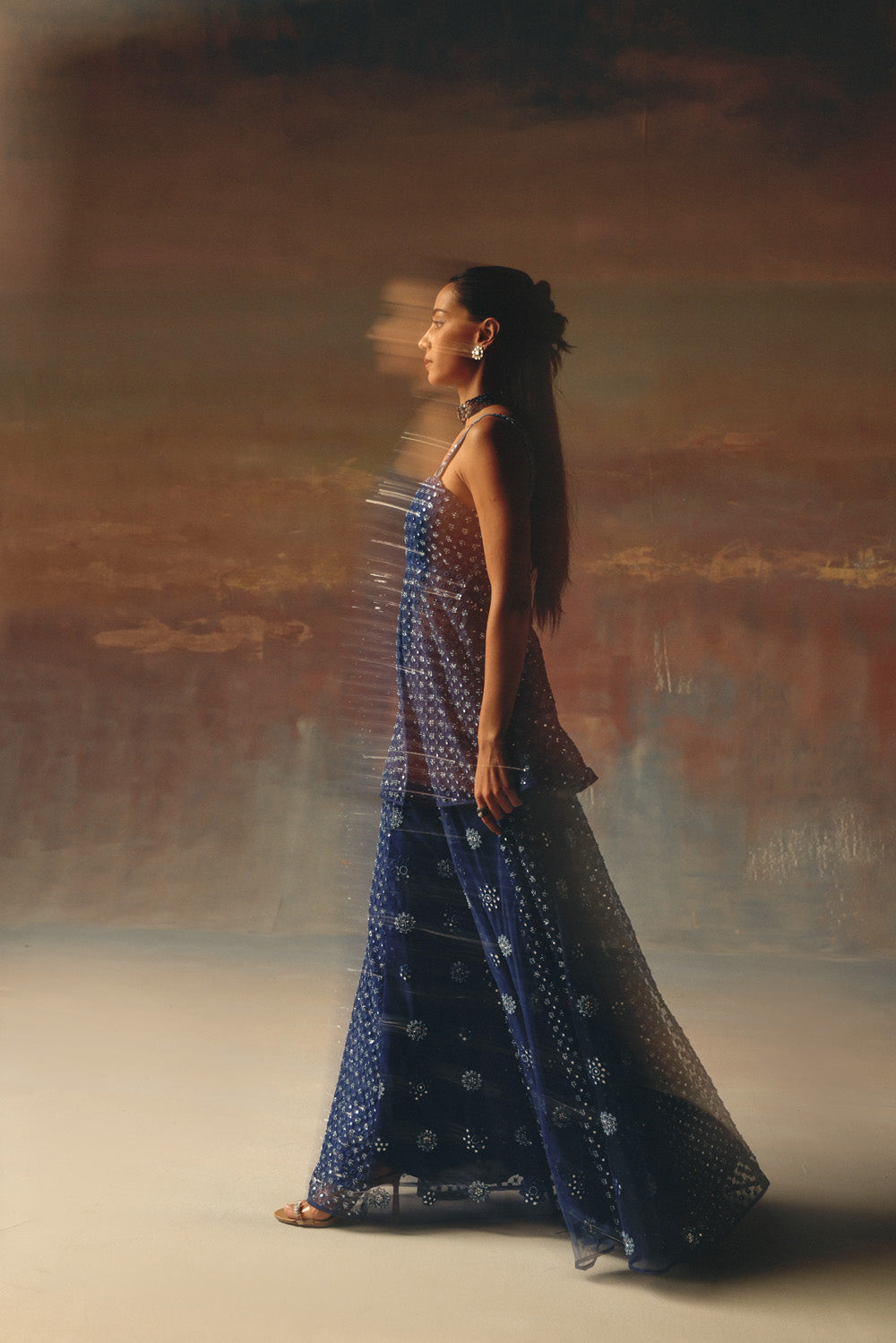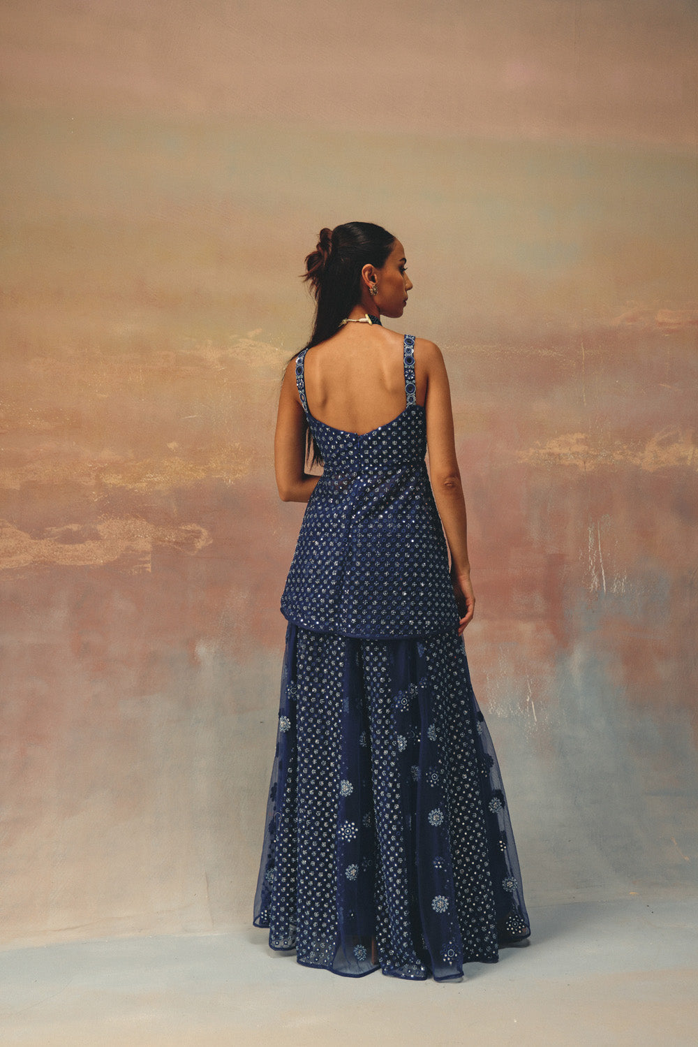 This Mirrorwork and Beadwork blue jaal top is specially designed by our team and is crafted with great care and precision.