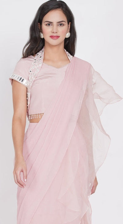 Georgette embellished saree with mirrorwork blouse
