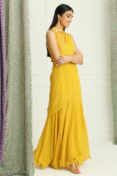 Yellow Lehenga Saree Set