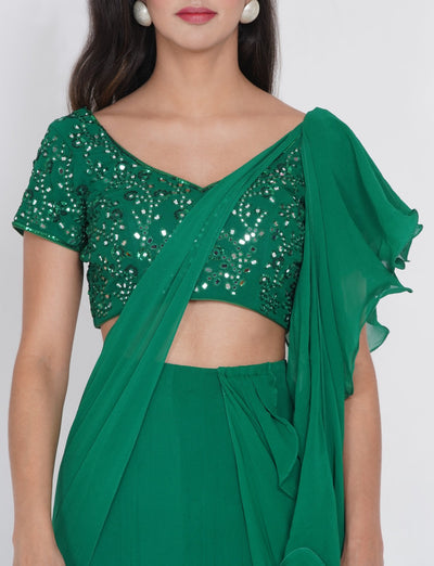 Georgette embellished saree with Mirrorwork Bralette