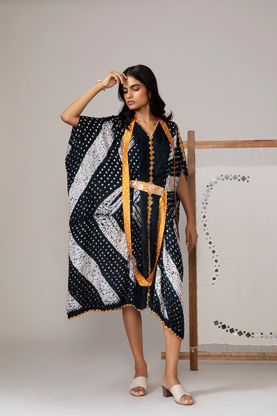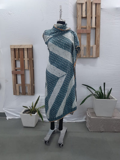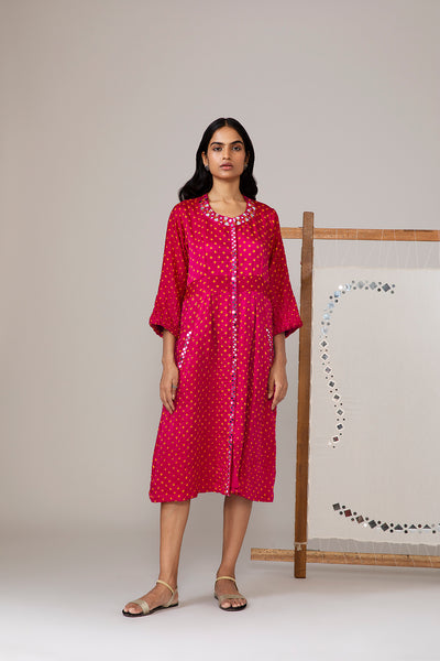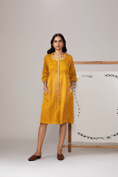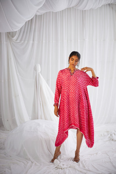 Rabari Asym Hi Neck Dress in Gajji Silk Bandhani