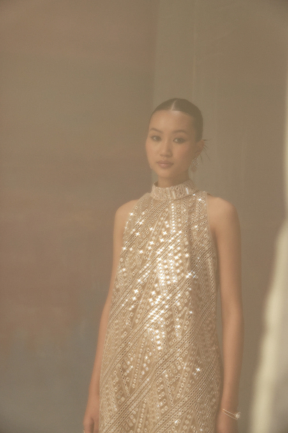 High neck dress top With Mirrorwork Highliting On The Neck and delicate organza finishing