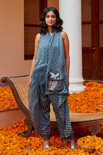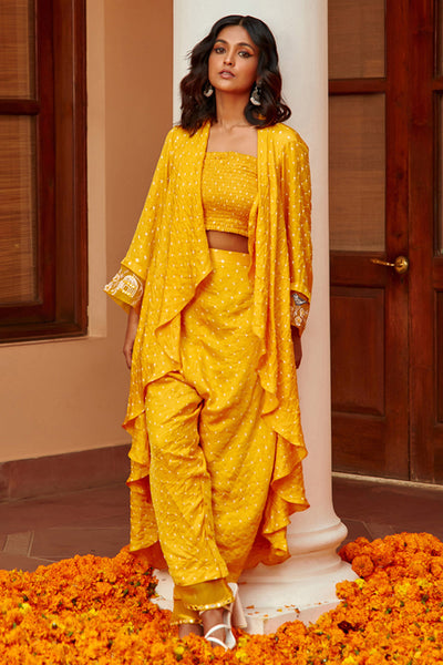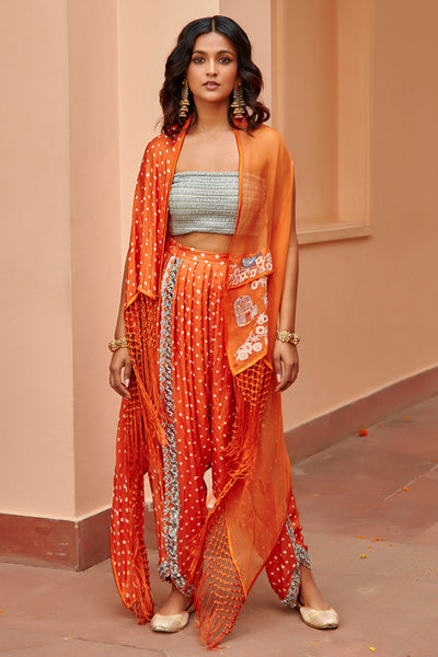Marodiwork Crushed Silk Bandhani Cape with Palazzos