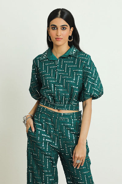 Shimoli in our Mirrorwork Scallop Peplum Jacket and Pants Set