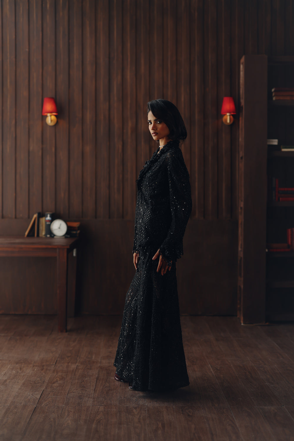 Hand embroidery embellished 3D flower jacketwith mirrorwork beadwork on tulle