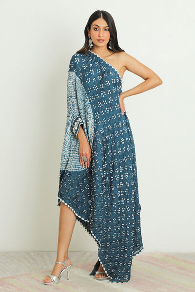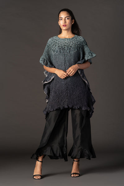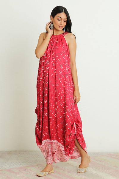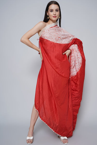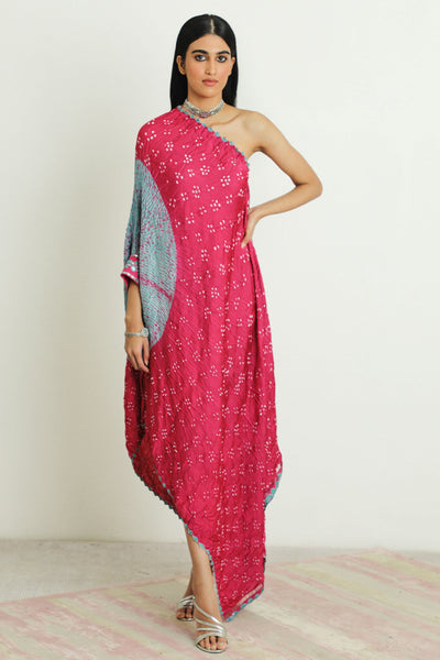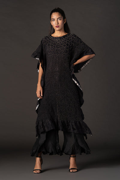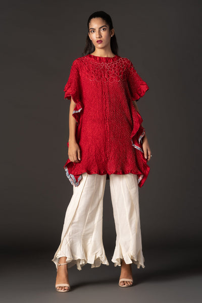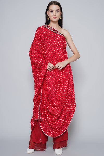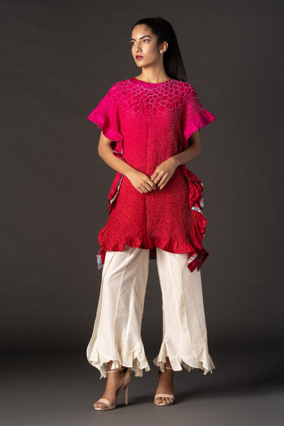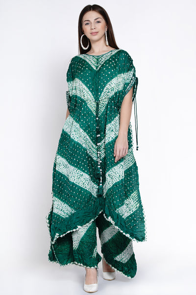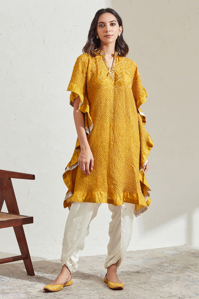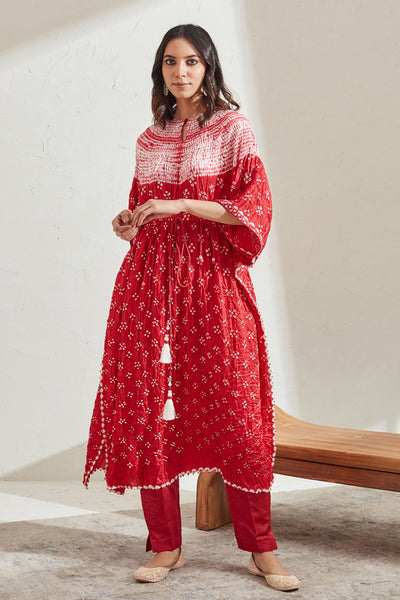 Marodiwork Crushed Bandhani Silk Kaftan Kurta with Pencil Skirt