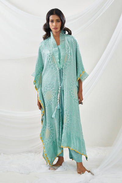 Gajji Silk Bandhani Frill Kaftan Overlay (Set of 3)