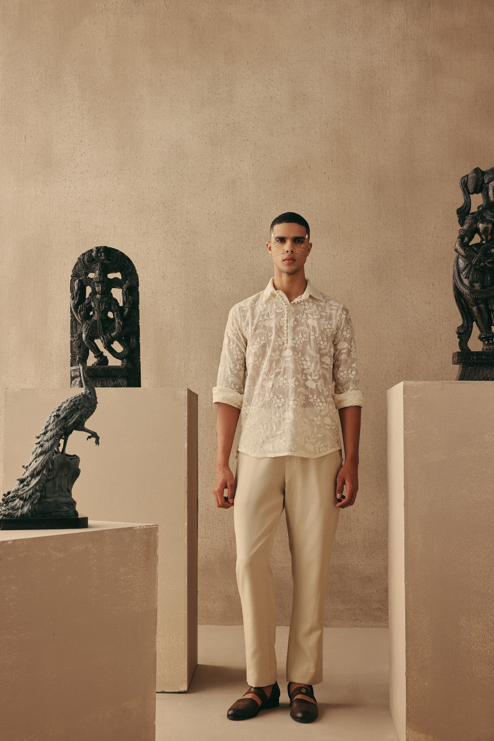 Chikankari Band Collar Kurta Shirt Set