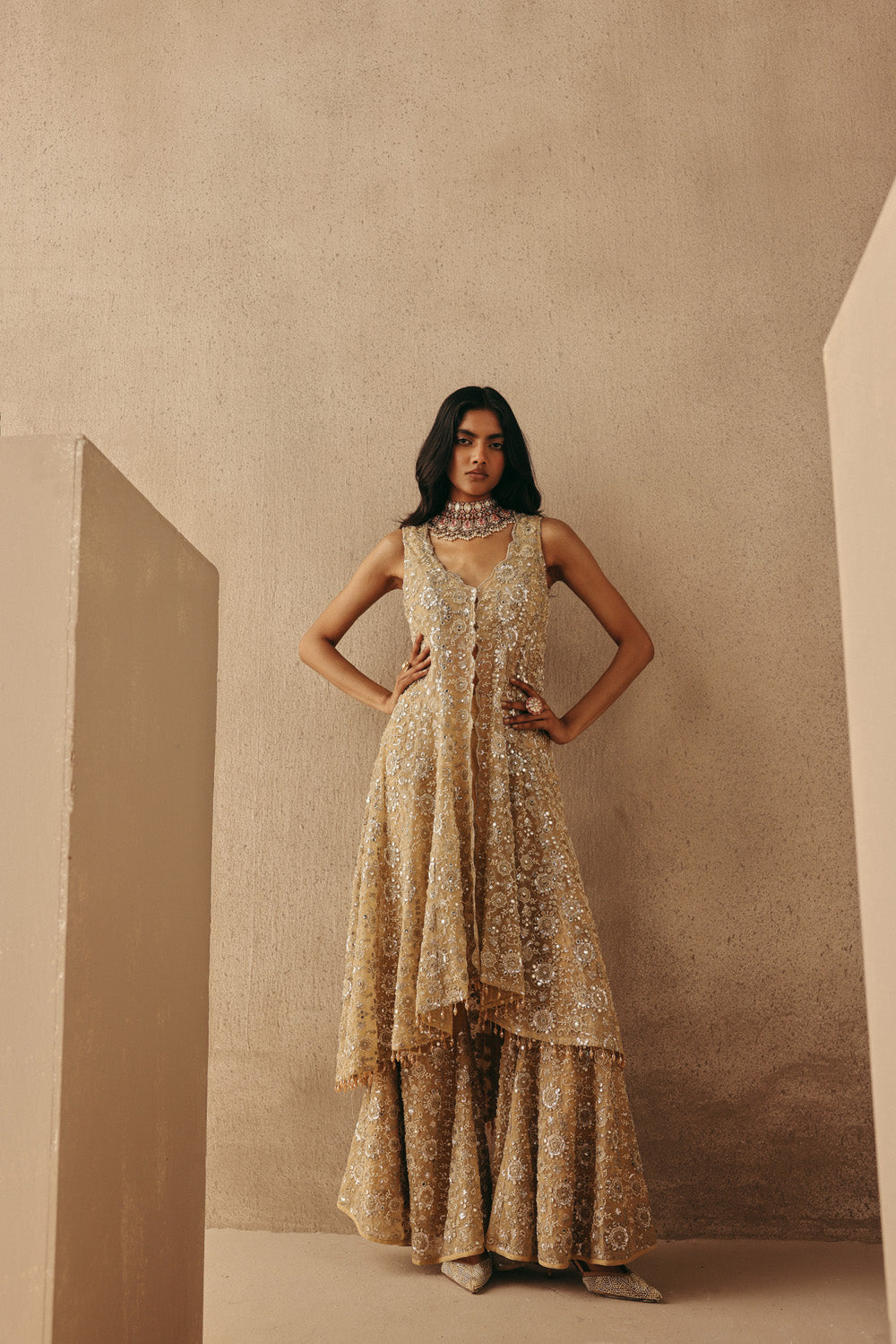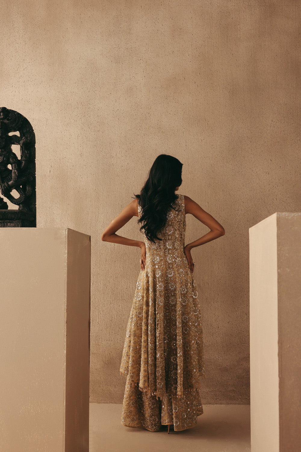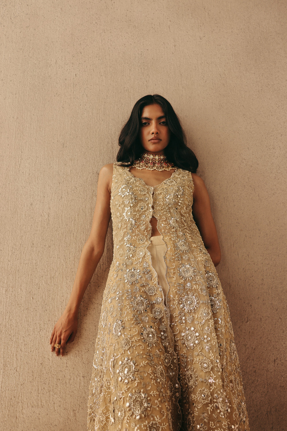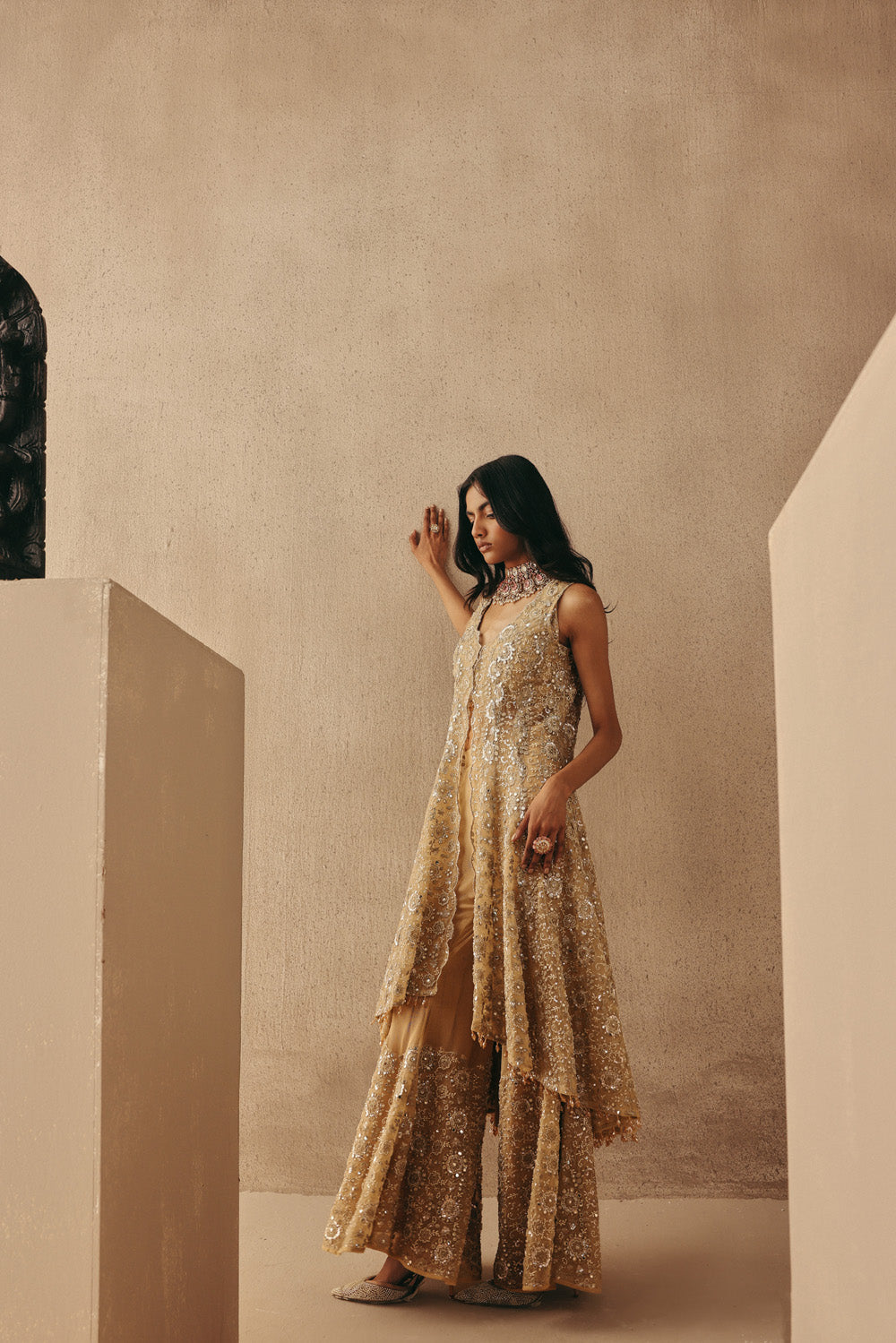 Fabric Details : Asym Sherwani With Scallop Mw Border All Around