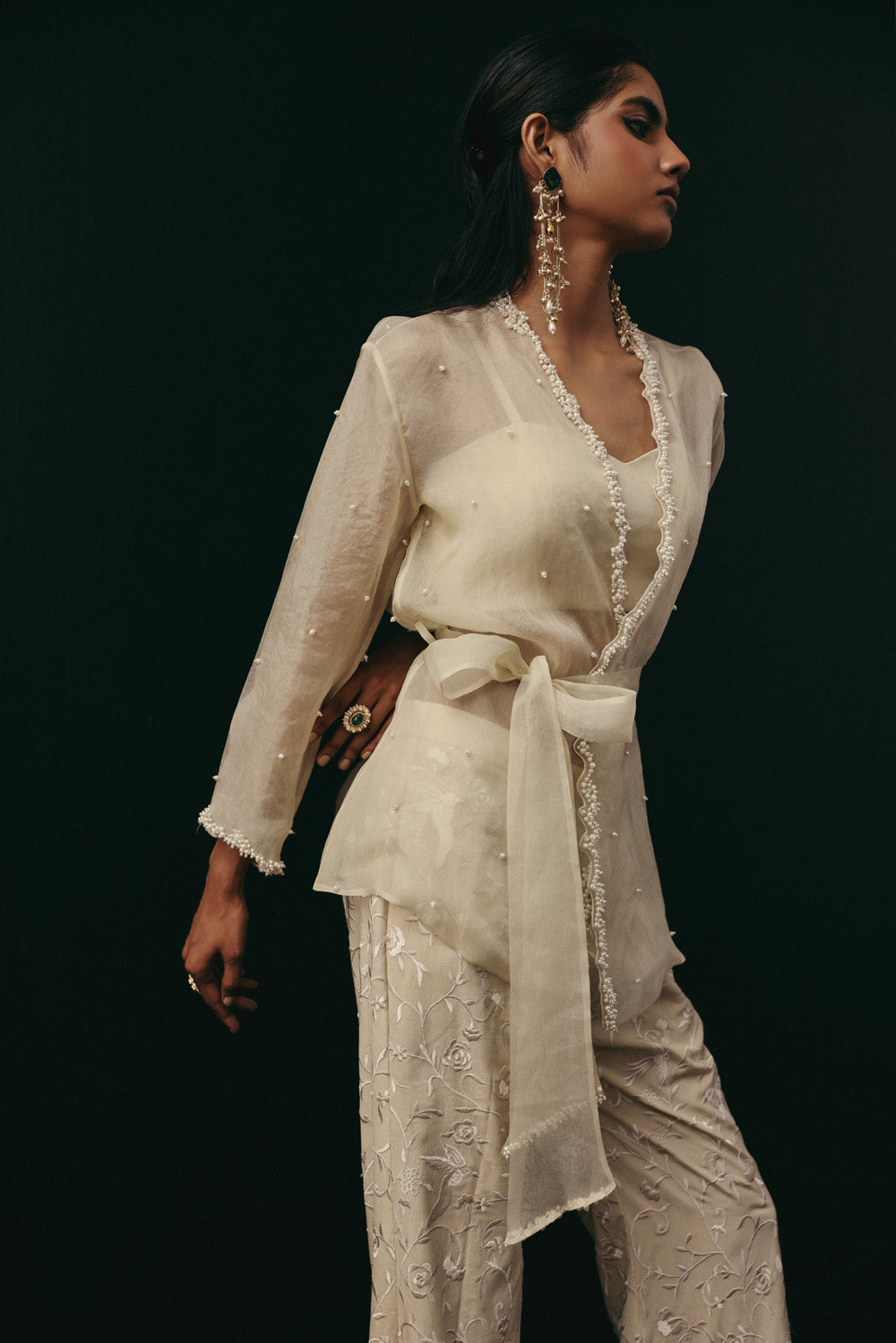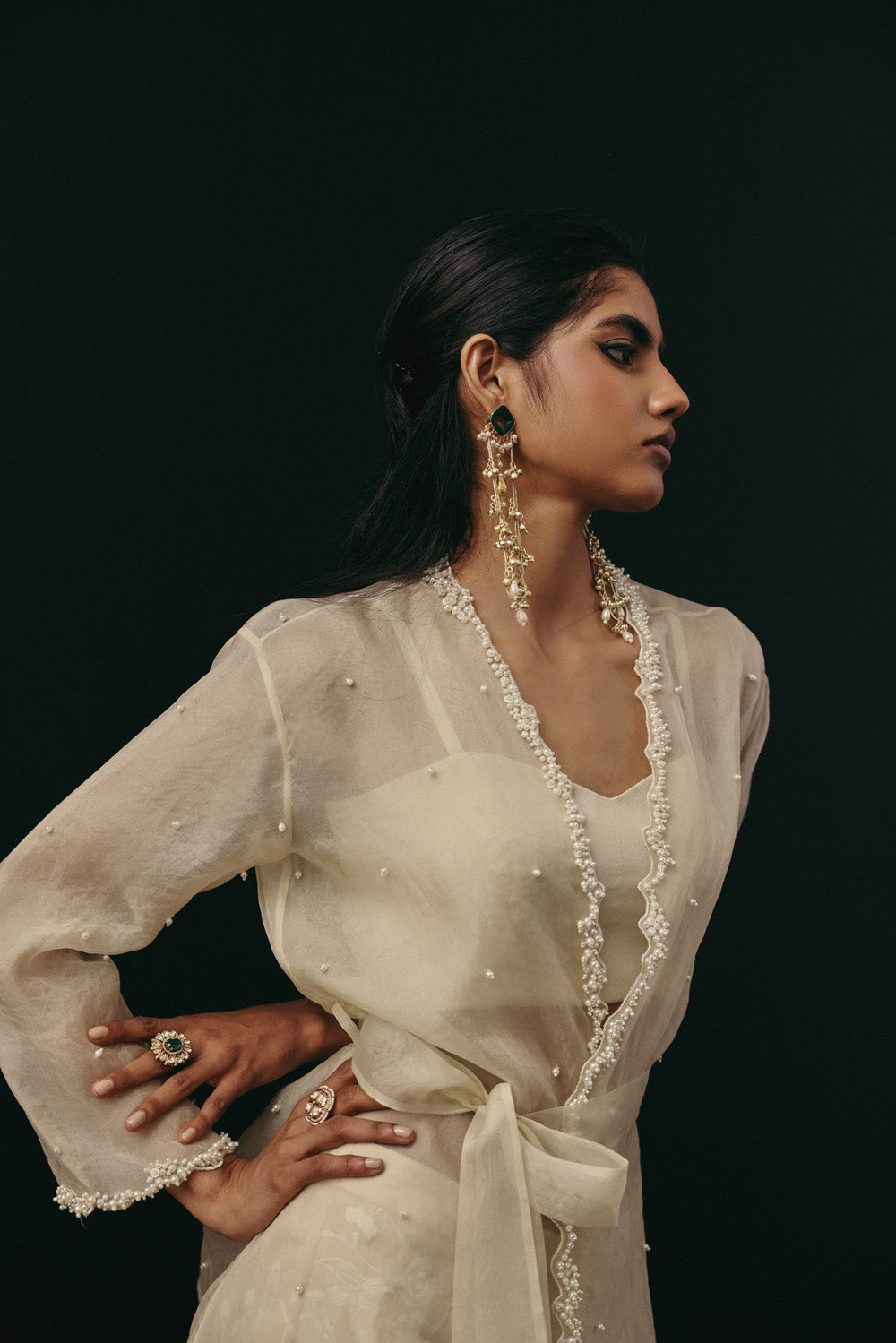 Fabric Details : Parsi Gaara Overlay Belt Jacket With Beadwork Embroidery