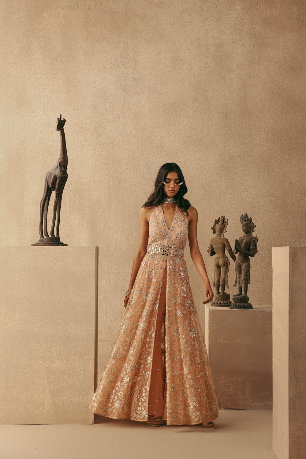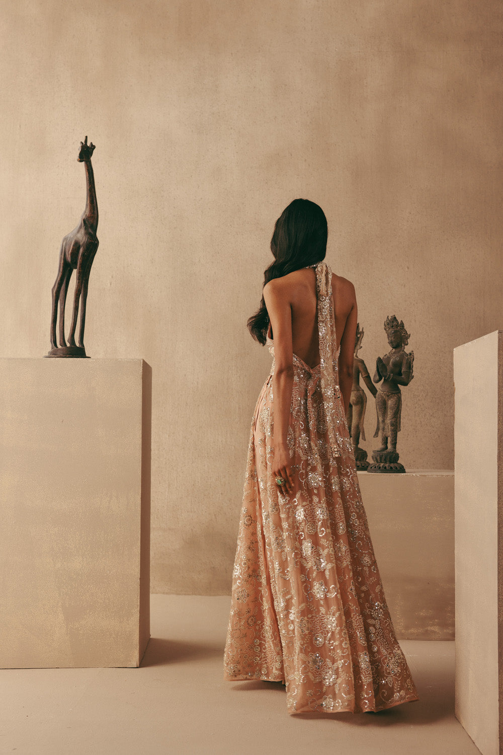 Mirrorwork Hi Neck Long Backless Dress