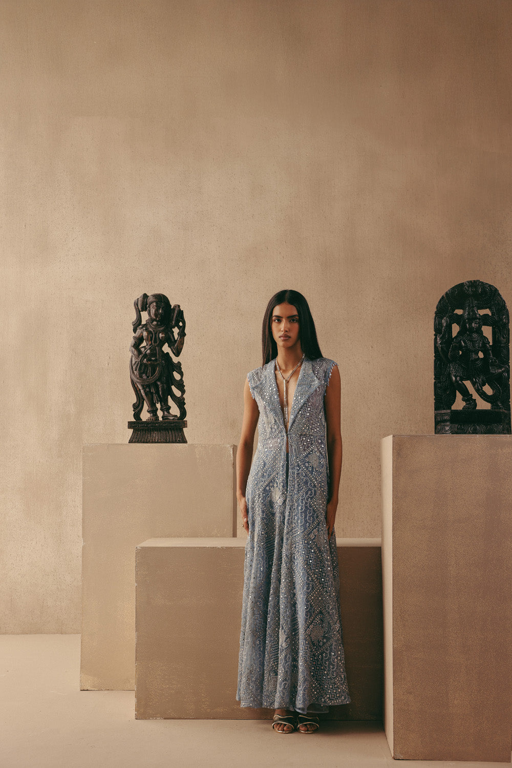 Mirrorwork Wing Collar Long Jacket