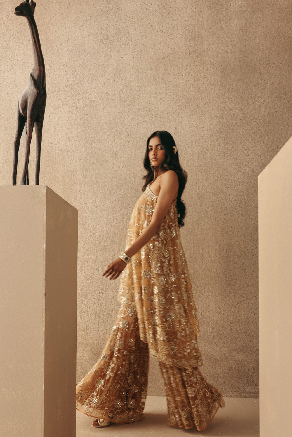 Mirrorwork And Zari Floral Lacework Shararas