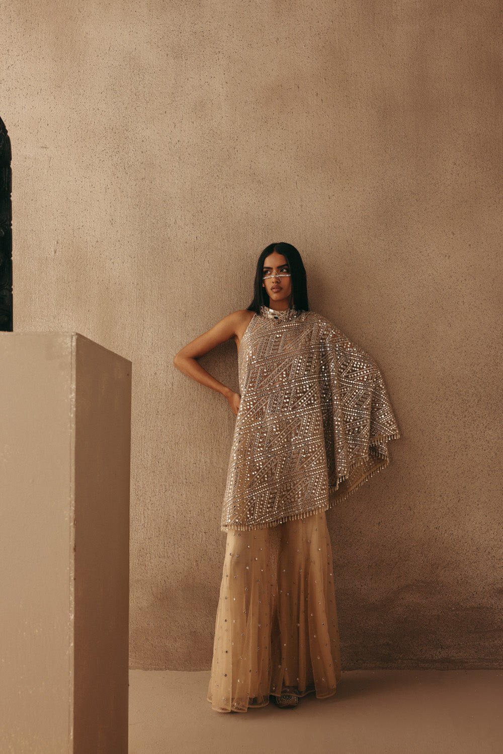 Mirrorwork One Shoulder Dress Jacket