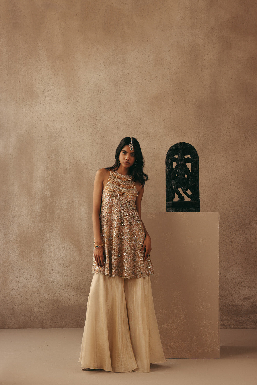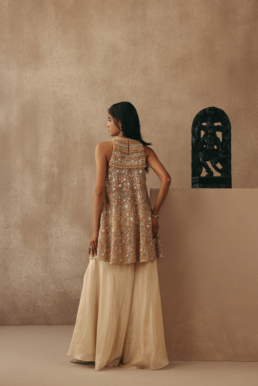 Mirrorwork Backless Peplum Top
