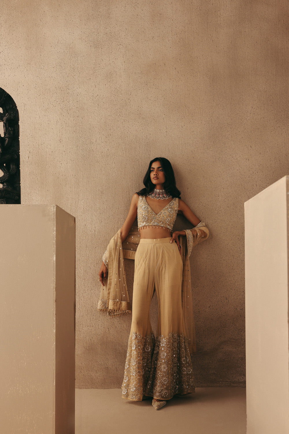 Mirrorwork Sharara Lehenga with Sleeveless Blouse and Mw Tulle Dupatta