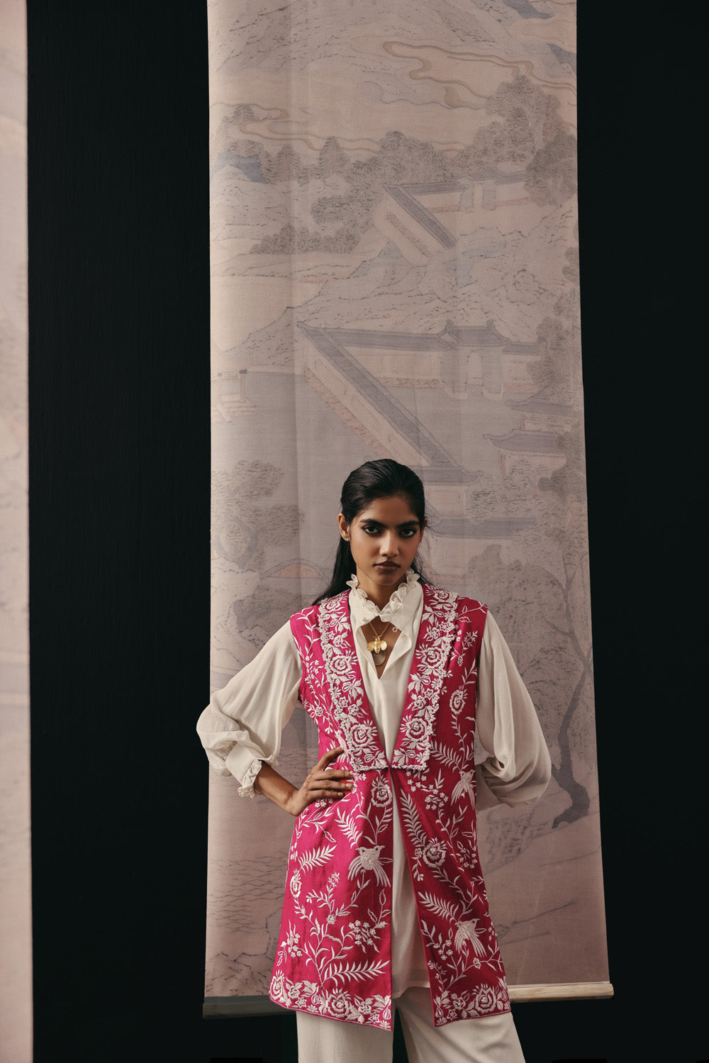 Mirrorwork Sharara Lehenga with Sleeveless Blouse and Slip On Jacket