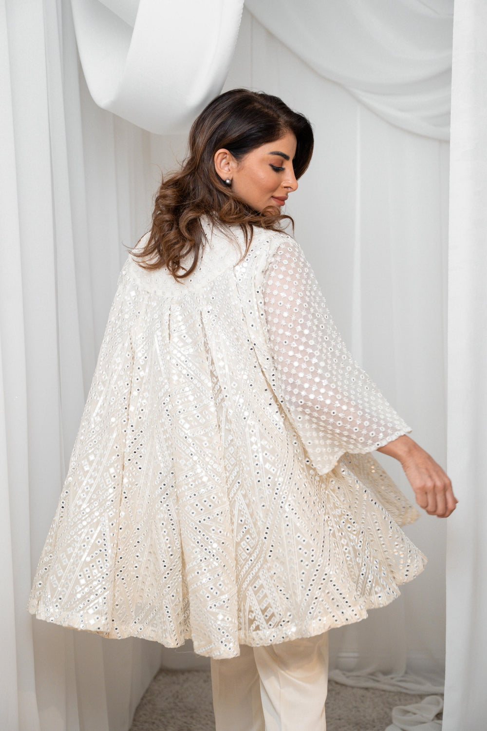 Mirror Work Jacket Style Top with Bell bottom in mirrorwork