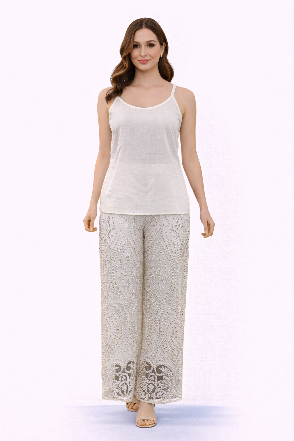 Inner with Mirrorwork on Neckline and Jaaliwork Flared Pants