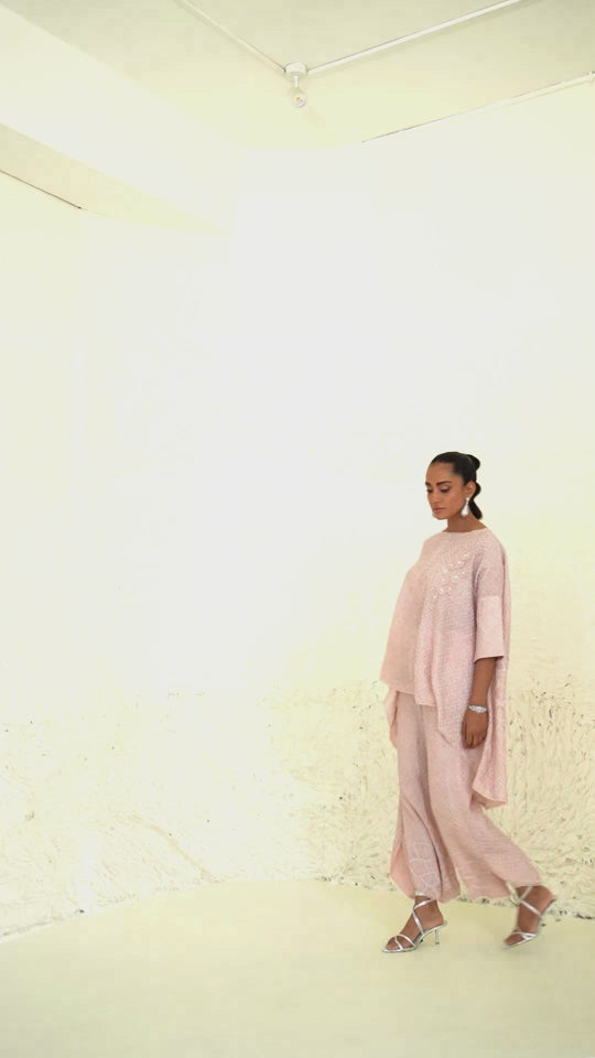 Garment Description : The ensemble is made in hand tied and dyed Crushed Raidana Silk Bandhani, designed by us & crafted by master artisans in Kutch. The garment is designed by our team with great care and precision. We recommend dry clean only.