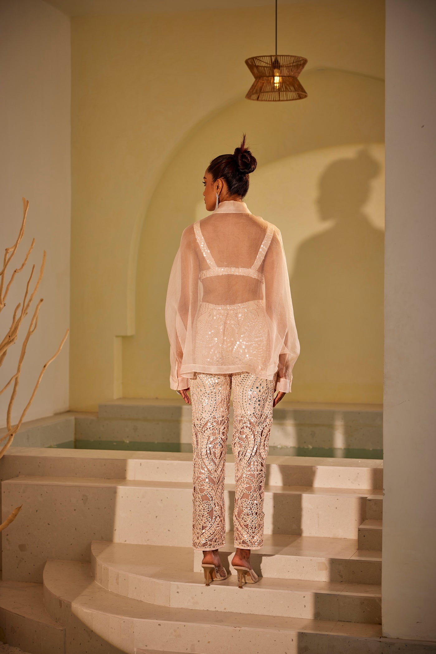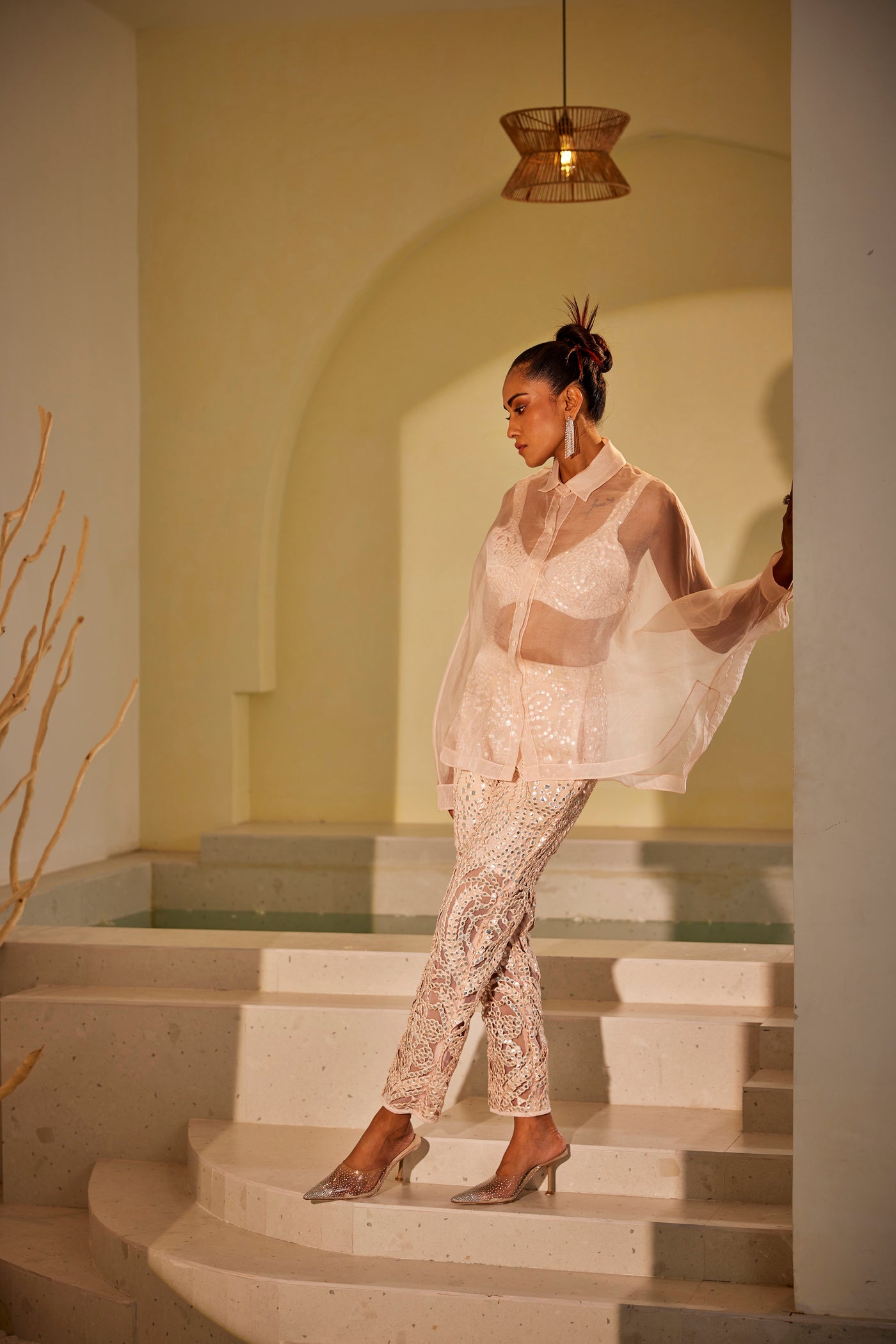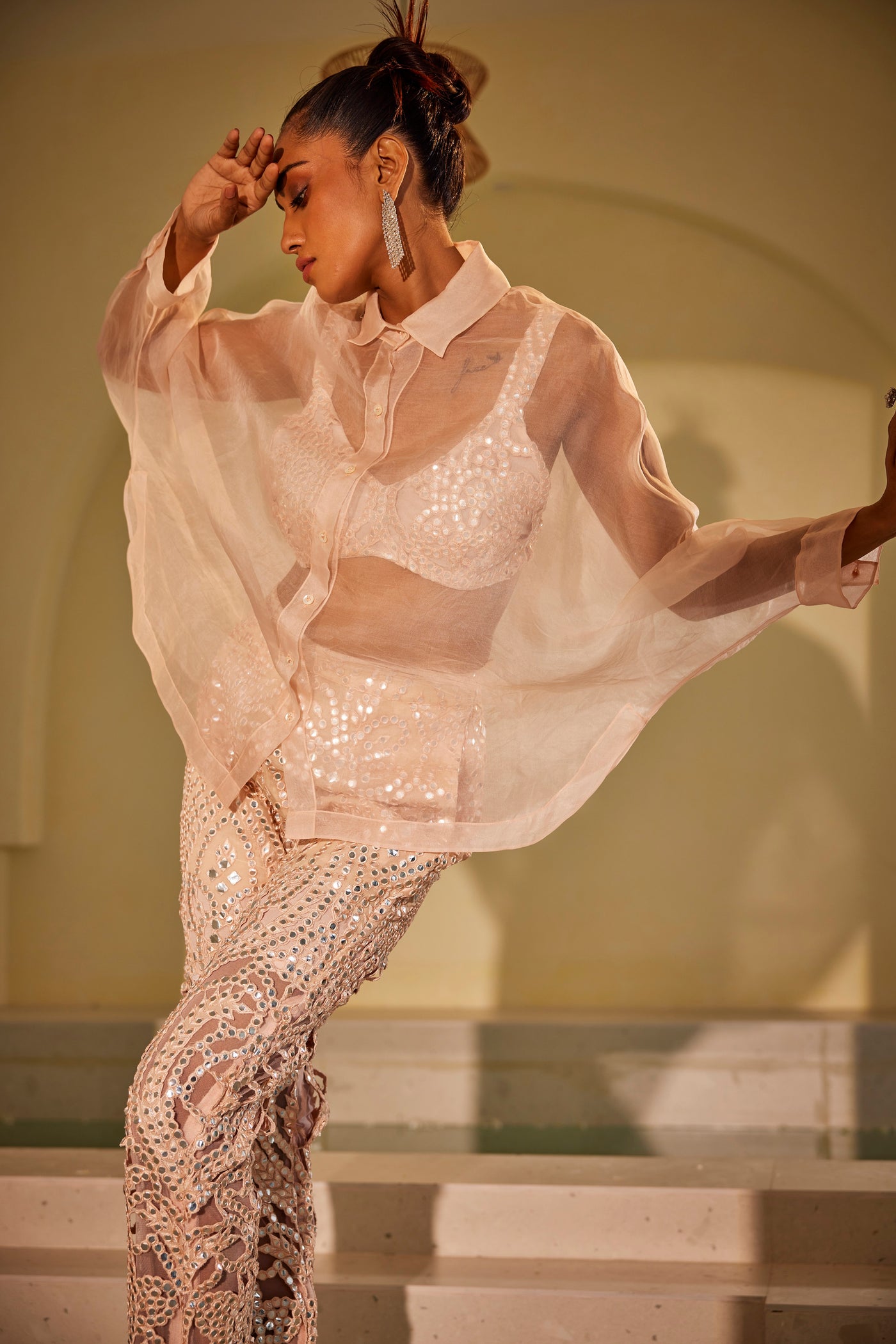 Garment Description : The georgette fabric is specially designed by our team and crafted with great care and precision. With the floating mirror effect of jaaliwork, the garment is then styled at our workshop with finest details. We recommend dryclean only.
