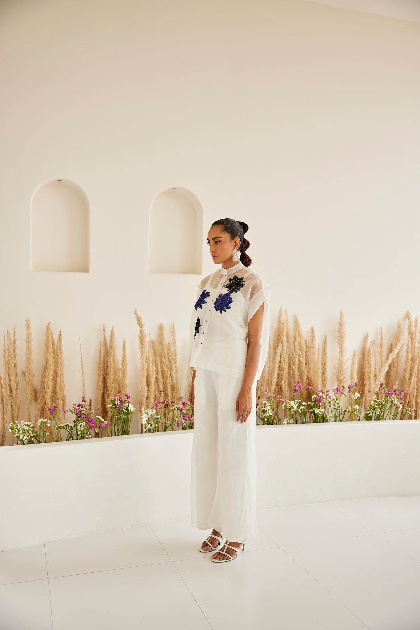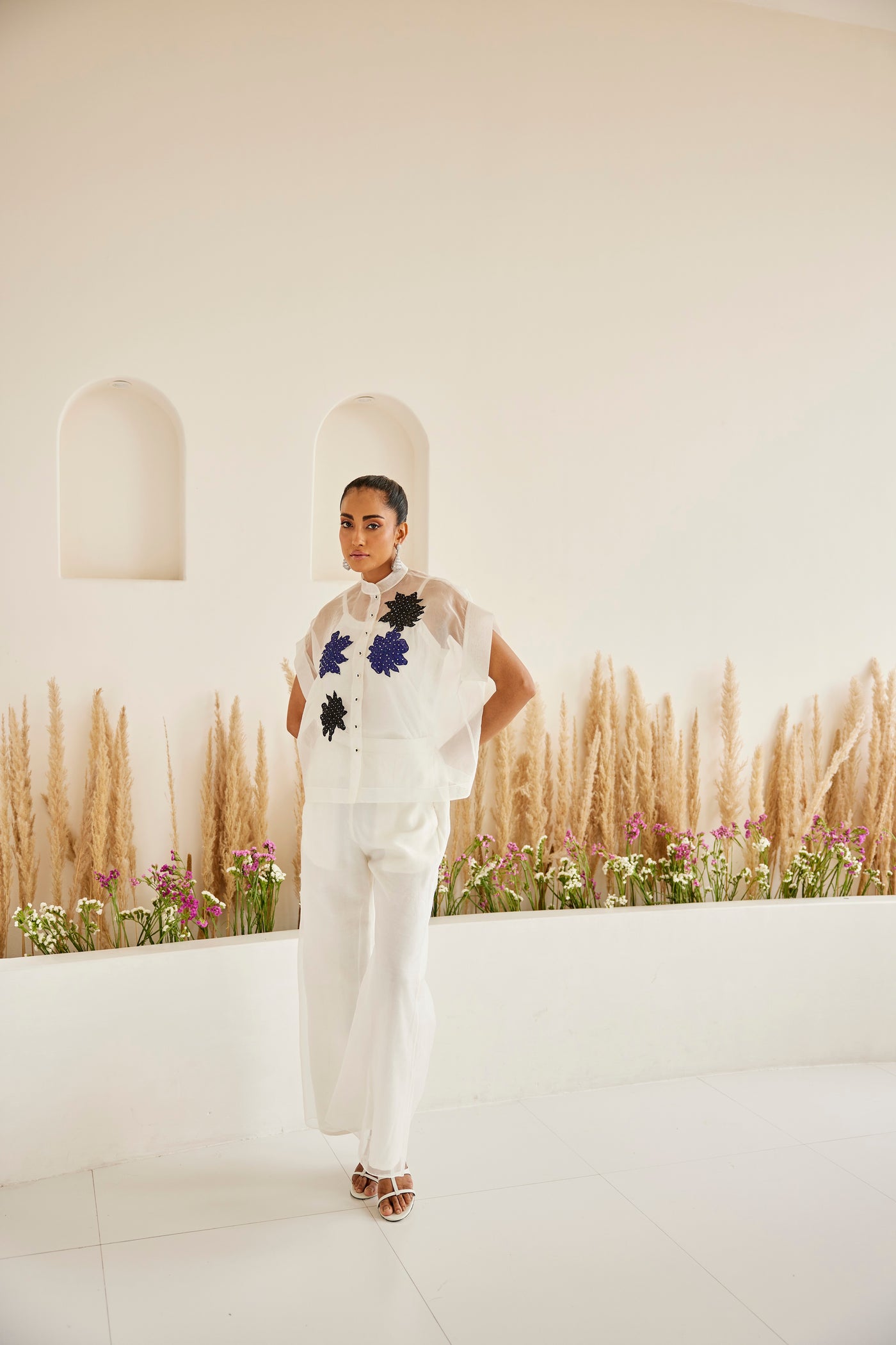 Garment Description : The ensemble is made in silk organza, using leftover artisanal Crushed Raidana Bandhani as appliques. The garment is designed by our team with great care and precision. We recommend dry clean only.