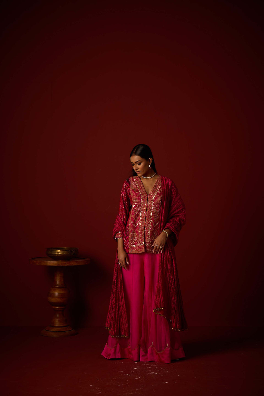 Short and Long Patola Kurta With Embellished Salwar Pants