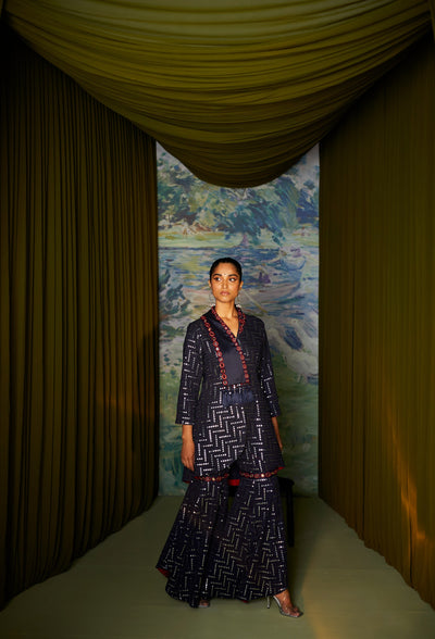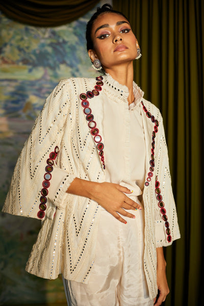 Rabari Wing Collar Slit Sleeve Mirrorwork Jacket