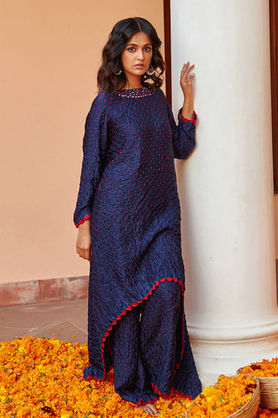 Bandhani Asymmetric Cherry Blossom Cuff Tunic Set