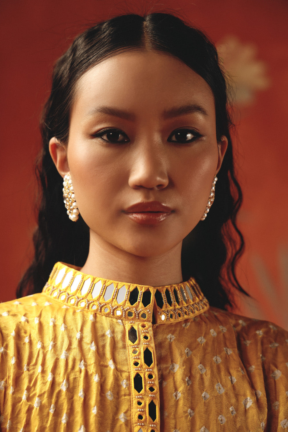Gajji Bandhani Oversize Kurta with Mirrorwork and Beadwork