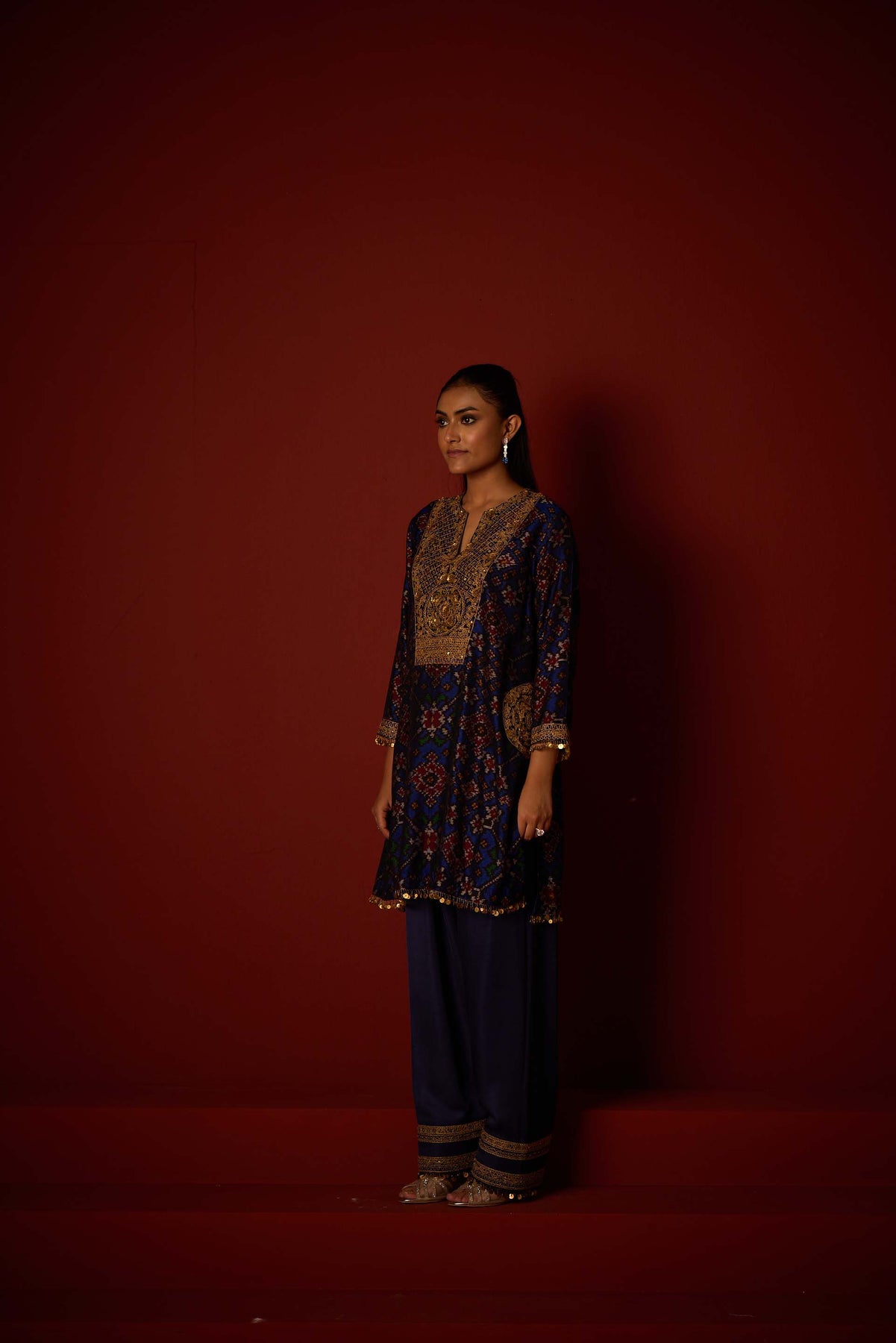 Patola Tunic Embellished With Marodiwork, Enhanced With Tassel Details And Inner Finishes.