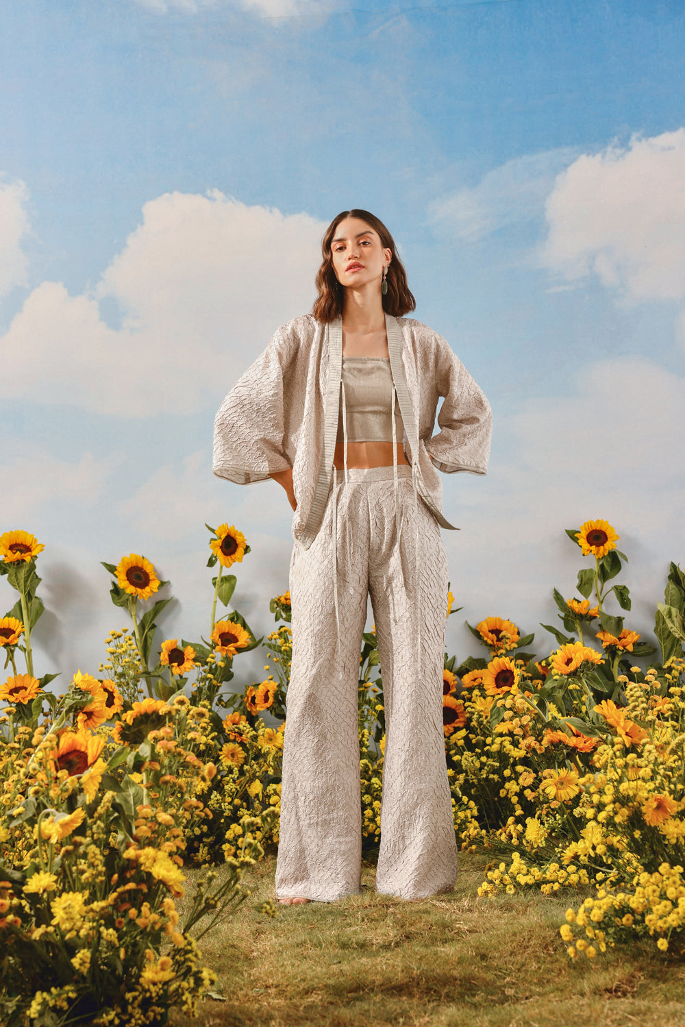Fabric Details : The ensemble is made in hand tied and dyed Crushed Raidana Silk Bandhani, designed by us & crafted by master artisans in Kutch. The garment is designed by our team with great care and precision. We recommend dry clean only.