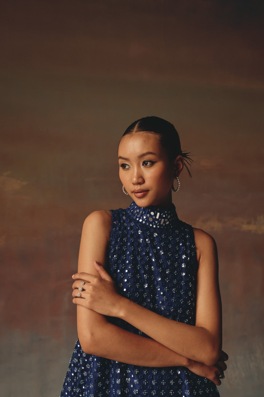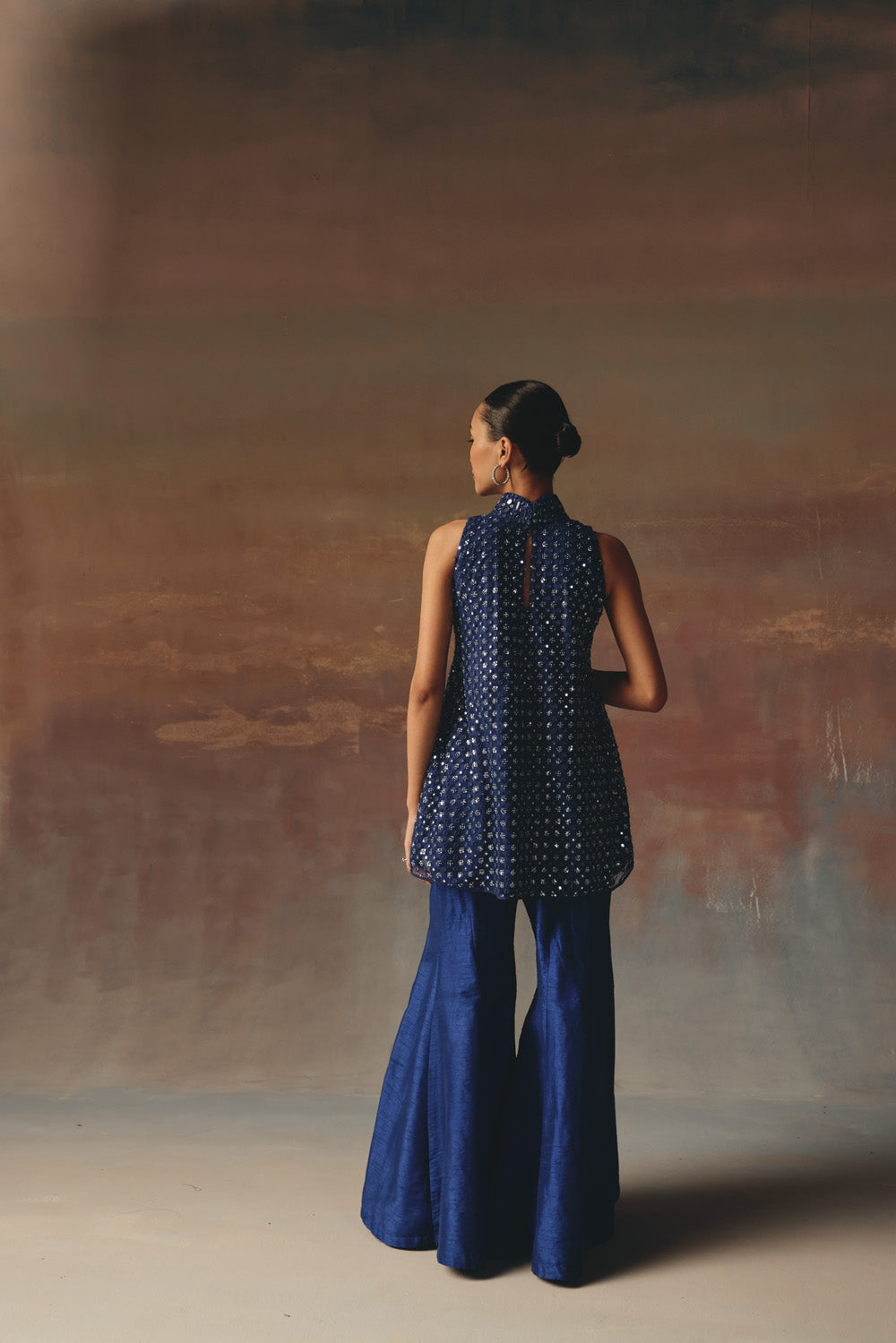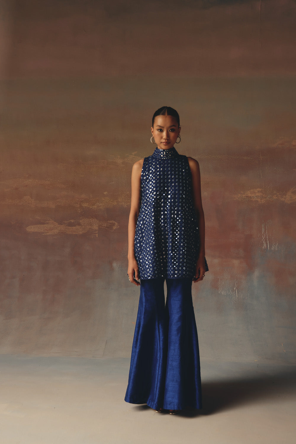 High Neck Halter Neck Top With Mirror work And Beadwork