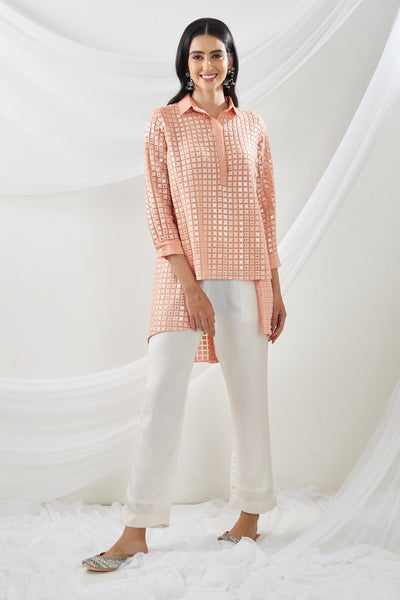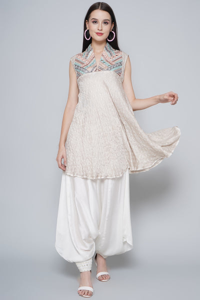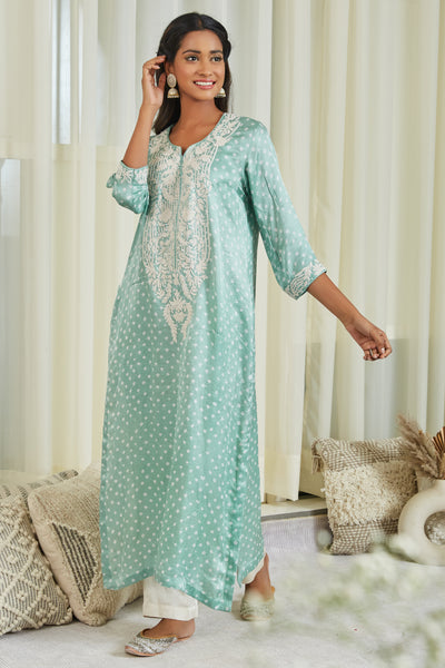 Gajji Silk Bandhani Dori Mirror Embellished Kurta with Pants