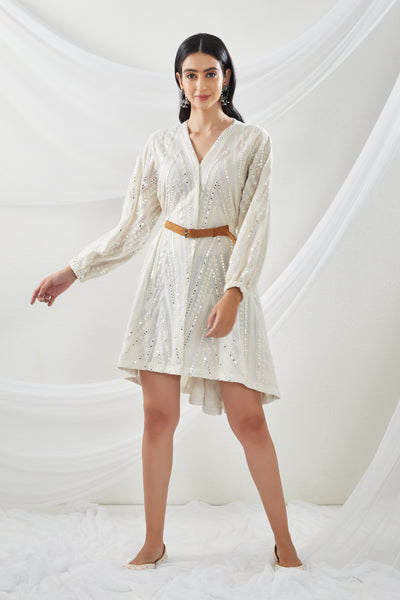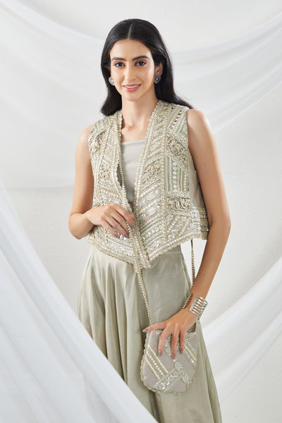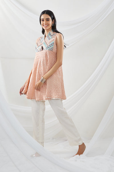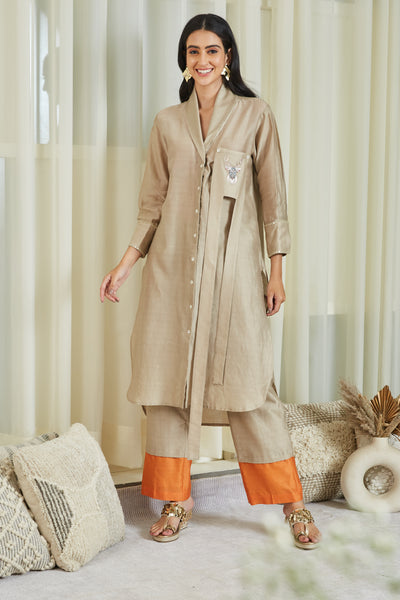 Gajji Silk Bandhani Dori Mirror Embellished Angarkha Kurta with Pants