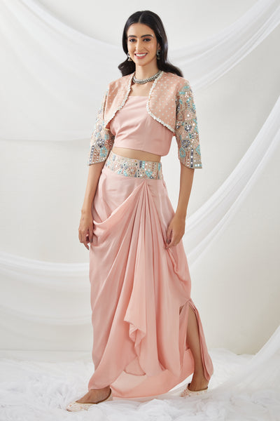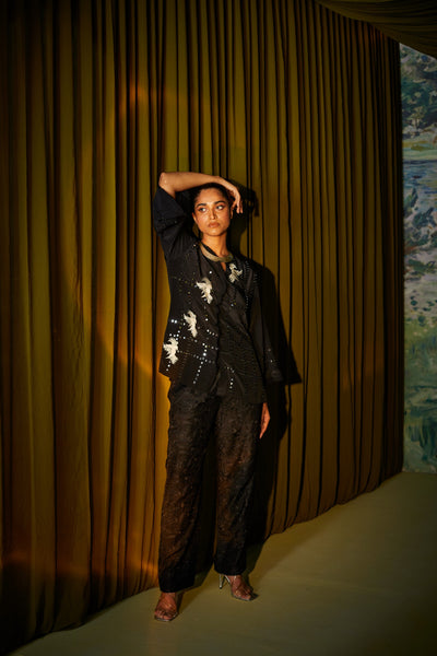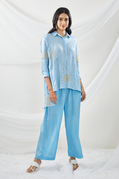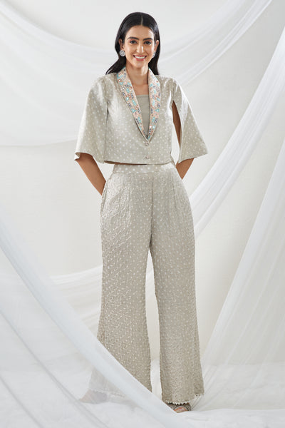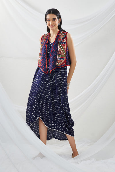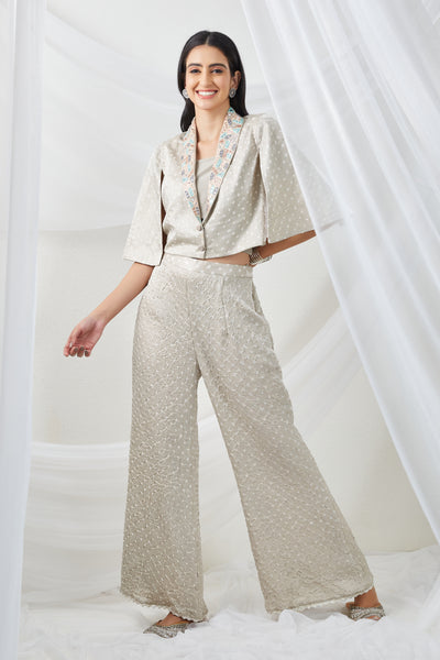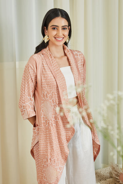Gajji Silk Bandhani Lapel Overlay with Bustier and Pants