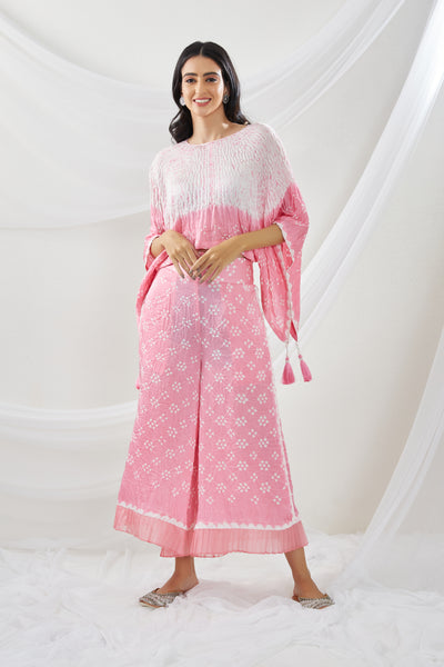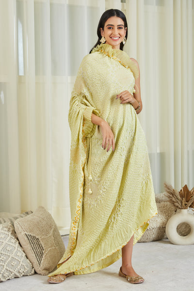Gajji Silk Bandhani Frill Kaftan Overlay (Set of 3)