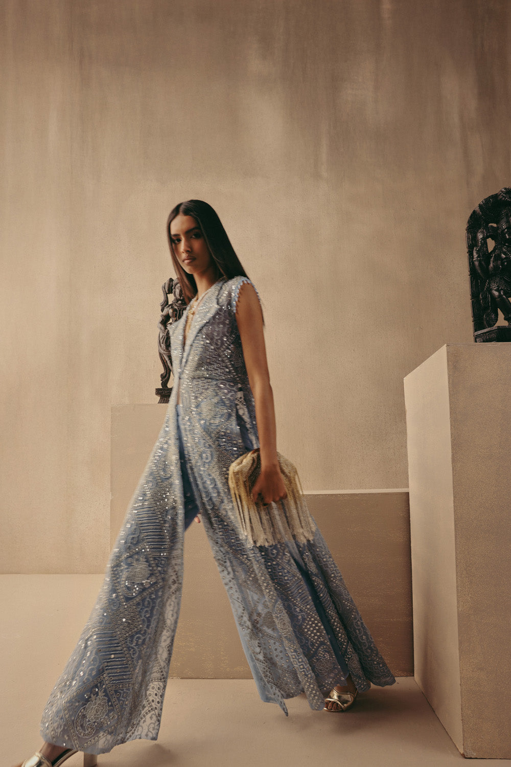 Brocade Mirrorwork Palazzos