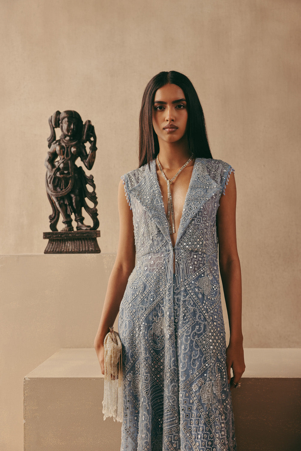 Mirrorwork Wing Collar Long Jacket