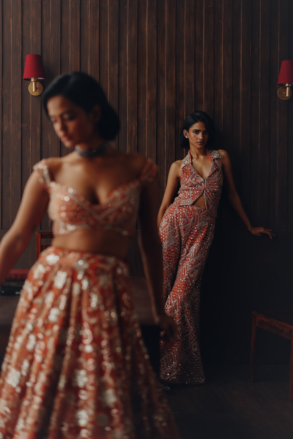 Fabric Details : This mirrorwork beadwork net fabric is specially designed by our team  and is crafted with great care and precision. The garment is then styled at our workshop with finest details.