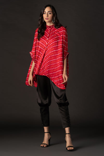 Details: Bandhani Oversize Shirt in Gajji Silk with Mirror and Beadwork