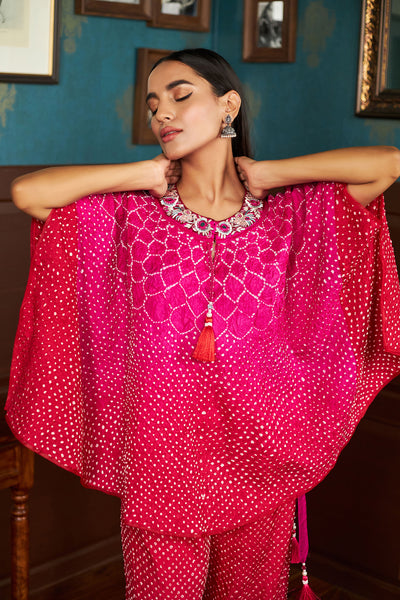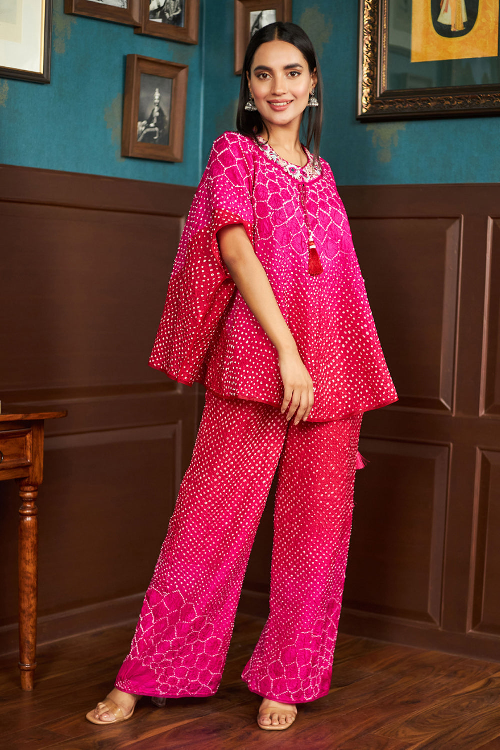 Crushed Raidana Bandhani Sunrays Top with Parsi Gara Mirror work.